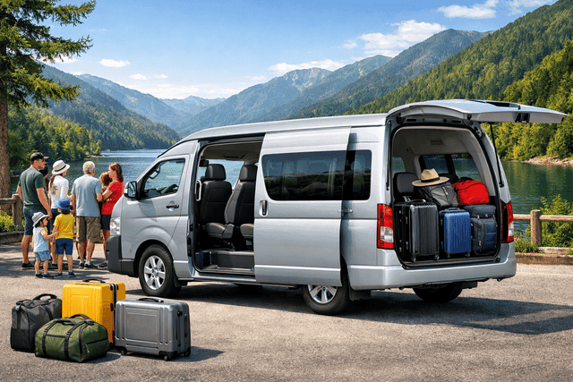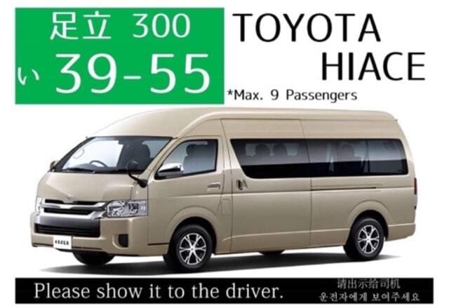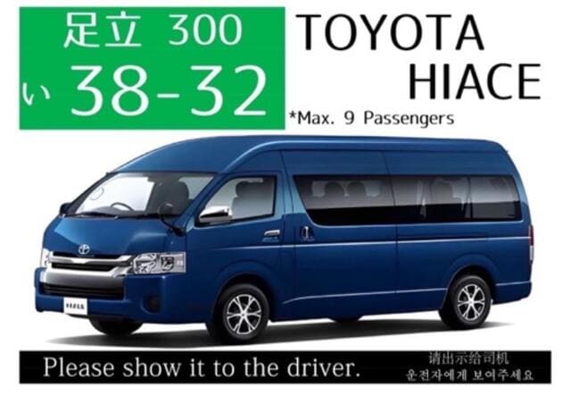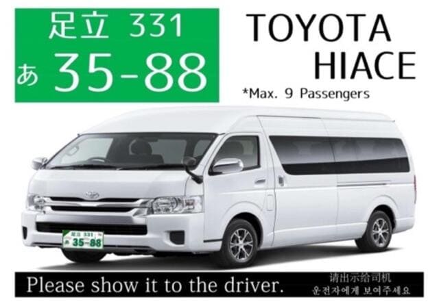 Spacious HiAce seats up to 9 passengers, perfect for families and groups. Plenty of room for luggage, more comfortable and cost-effective than trains.